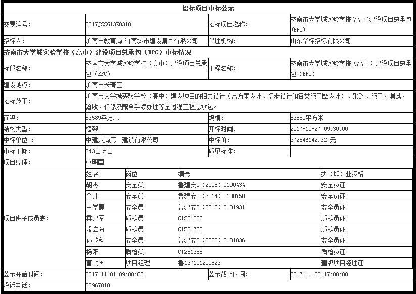 濟南市大學城實驗學校(高中)建設項目總承包(EPC)中標公示