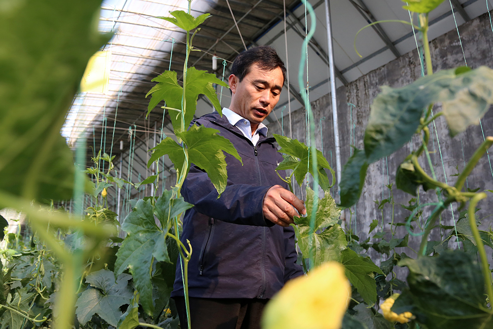 在絲瓜棚,陳德國邊檢查著絲瓜生長情況邊解釋說“這個棚的種植戶貪多,總想著一個藤上結(jié)好幾個瓜,但實際上果多不等于產(chǎn)量高,有時候一個藤上好幾個果反而營養(yǎng)供不上了。”對于各類蔬菜種植,經(jīng)過18年的不斷實踐學(xué)習(xí),陳德國逐漸總結(jié)出了自己的一套“種植經(jīng)”。