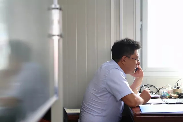 8:50濟(jì)南齊魯黃河大橋建設(shè)指揮部,我們?nèi)缂s見(jiàn)到了趙世超。一進(jìn)入項(xiàng)目部“板房”辦公室,他就立馬打電話安排起了今天的工作,這種工作狀態(tài),早已是他熟悉的工作節(jié)奏。從2001年畢業(yè)開(kāi)始,趙世超就一直住板房、跟工程,有著17年項(xiàng)目一線工作經(jīng)驗(yàn)的他,是建設(shè)一線一名結(jié)結(jié)實(shí)實(shí)的“老將”。
