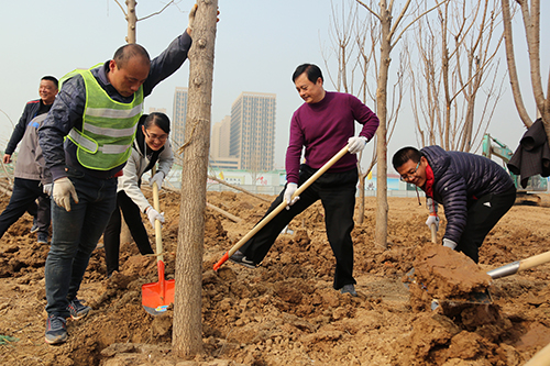 在第40個植樹節來臨之際,3月10日上午,濟南城市建設集團組織干部職工在華山生態濕地公園園林一期B區開展義務植樹活動。集團黨委書記、董事長李國祥,集團黨委副書記、總經理李培杰等集團領導及150多名干部職工參加了植樹活動,共栽種欒樹、白臘樹、櫻花樹、五角楓等各類苗木600余棵。