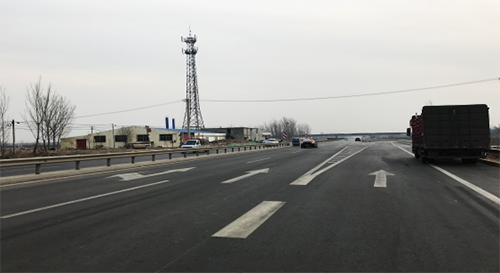 為提示駕駛員按車道行駛,避免駕駛員疲勞駕駛,該項目除設置縱向振動標線外,橫向還設置了更加醒目的紅色振動標線,既提高了車輛行駛的安全性,又提升了標線視覺上的警示功能,給單調的路面增添了一份色彩。