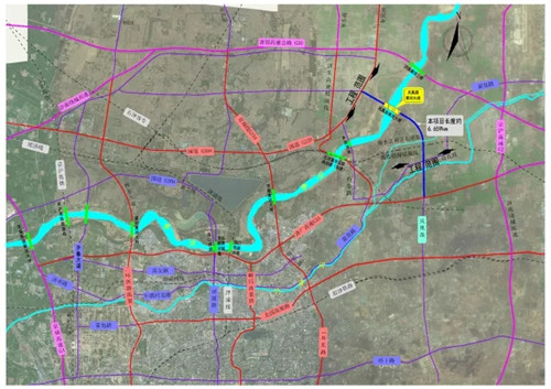 鳳凰黃河大橋由濟(jì)南城市建設(shè)集團(tuán)負(fù)責(zé)建設(shè),項(xiàng)目法人為集團(tuán)旗下的濟(jì)南城鳳公路工程有限公司。項(xiàng)目位于濟(jì)南市歷城區(qū)、高新區(qū)、濟(jì)陽縣,路線南起壩王路與荷花路交叉口,接現(xiàn)狀壩王路,依次跨越邯膠鐵路聯(lián)絡(luò)線、南水北調(diào)工程濟(jì)東明渠后繼續(xù)往北,在小河套村向西北方向延伸,跨越黃河后,終點(diǎn)位于遠(yuǎn)期規(guī)劃主干路與G220交叉口處。