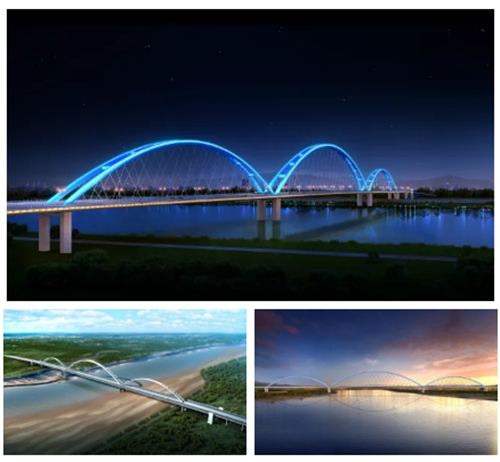 該方案打破了黃河河面和環(huán)境的單調(diào)平直,采用兩小拱一大拱的造型,將遠(yuǎn)山近水烘托調(diào)和,把水面和陸地相連,連接黃河的南岸與北岸,連接濟(jì)南的昨天與今天,“攜河”發(fā)展,將“屏障”變?yōu)?ldquo;資源”。河川秀美,一城山色,充分體現(xiàn)了濟(jì)南山水文化含蓄、輕柔的質(zhì)樸美。