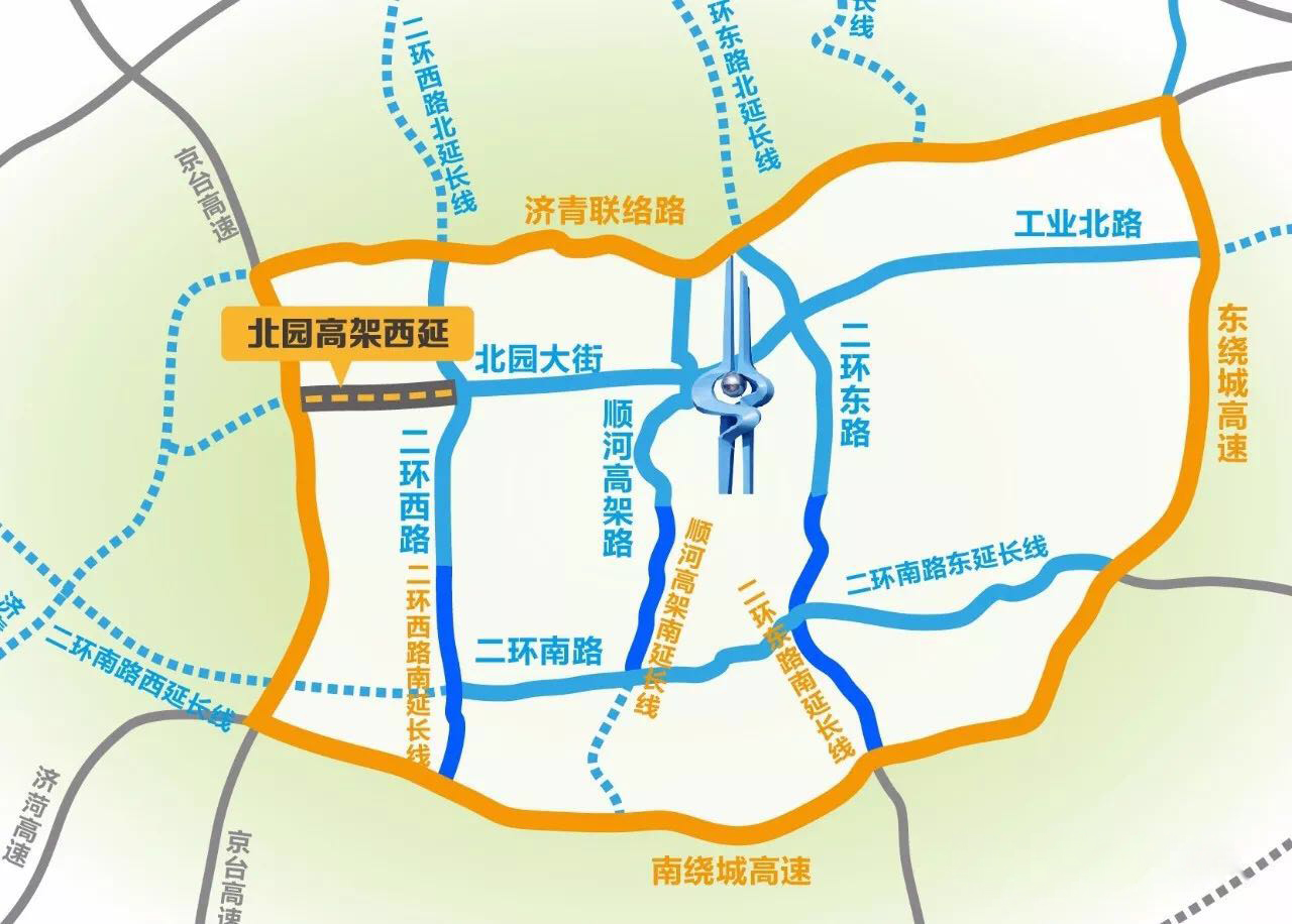 濟南市北園大街快速路西延建設工程東起匡山立交橋,西至京臺高速西側規劃南北三號路,長約5.6公里。作為第一條橫貫城區、連通東西繞城的快速通道,工程將西部城區、中心城區和東部城區、CBD連為一體,連接高鐵西站、火車站、新東站、機場等交通樞紐,對助力攜河北跨和新舊動能轉換先行區建設具有重要意義。