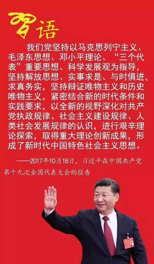 隨著十九大通過《中國共產黨章程(修正案)》,中國共產黨的旗幟上又寫上了習近平新時代中國特色社會主義思想。
