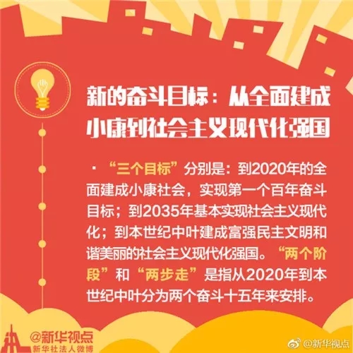 在新世紀新時代,經濟和社會發展的戰略目標是,到建黨一百年時,全面建成小康社會;到新中國成立一百年時,全面建成社會主義現代化強國。