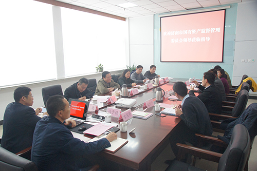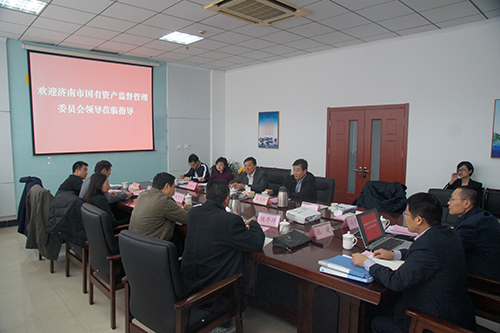 4月4日,濟南市國有資產監督管理委員會副主任董黎帶隊到濟南金衢公路勘察設計研究有限公司調研指導工作,濟南城市建設集團副總經理安玉坤、金衢公司董事長兼總經理張建、濟南金諾公路工程監理有限公司董事長兼總經理馮子強陪同調研。