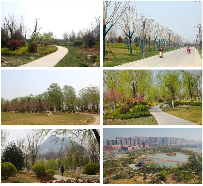 園區在設計建設時注重區分功能性和體驗性,華山北面部分定位為濕地展示區,展示濕地的景觀特性,融合體驗式科教,綠化景觀多為豐富層疊狀,各類植物栽種交錯有致,層次豐富,移步至華山東面及東南面,這片區域定位為山林文娛區,結合北臥牛山和驢山形成特色山林景觀,靠近山體部分的植物景觀結構上則多以大開大合景觀為主,大片草地開闊寬廣,風格迥異,賞玩別有趣味。