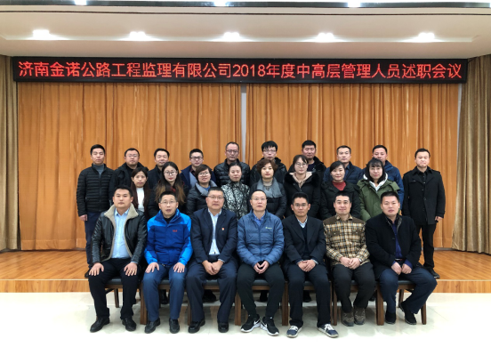 2019年1月12日下午,濟南金諾公路工程監理有限公司在東部代建辦會議室召開2018年度中高層管理人員述職會議。公司中層及以上管理人員、各項目負責人和10位公司職工代表參加了本次述職會議。