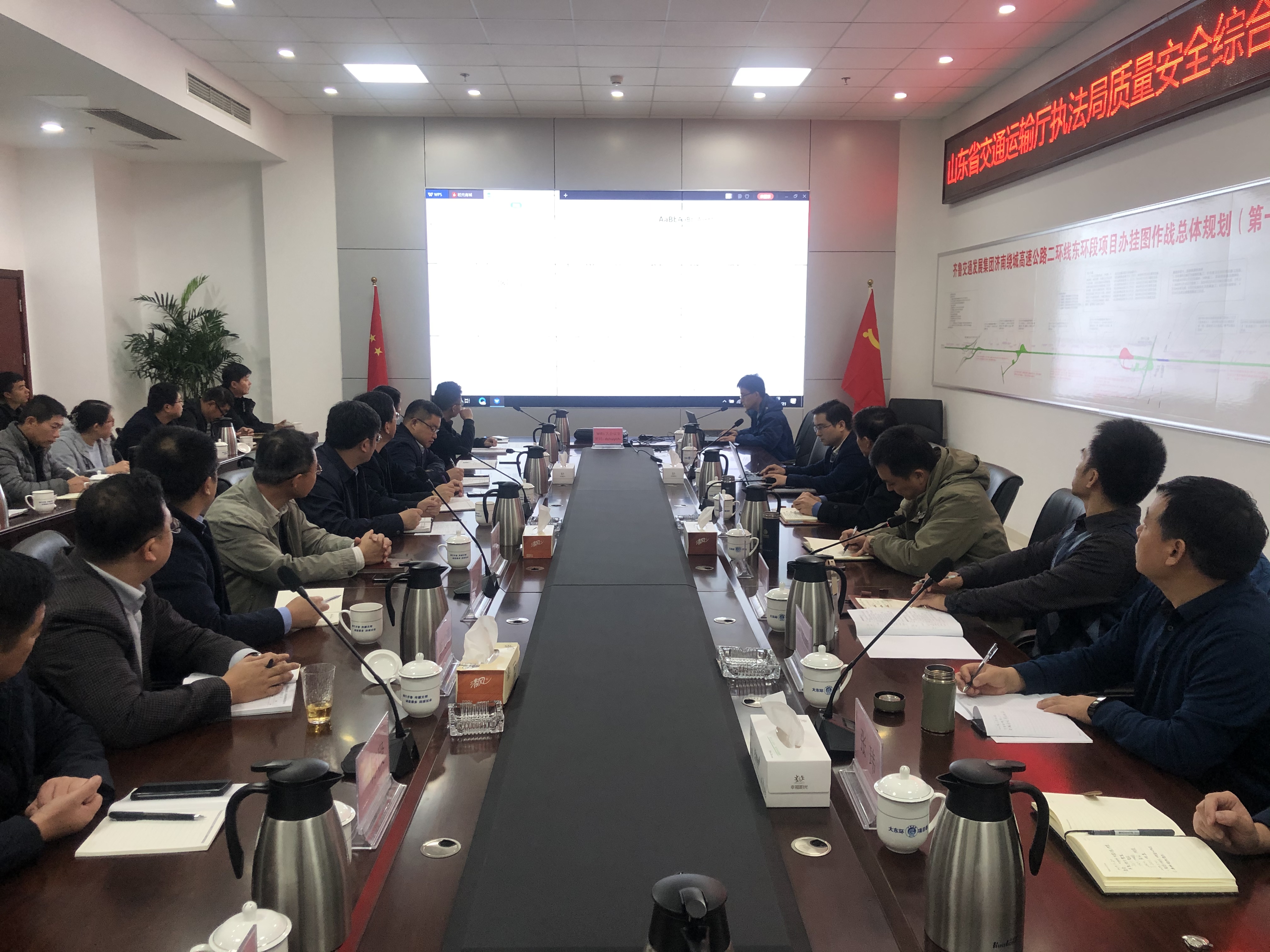 11月20—21日,山東省交通運輸廳執法局副局長張曉虎帶隊,分別到金曰公司濟南繞城高速公路二環線東環段第二標段、濟南至樂陵高速公路南延線工程TJ-1標段進行質量安全綜合督查。