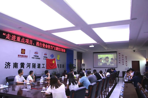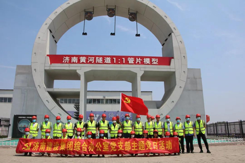 在濟南黃河隧道,支部成員參觀了濟南黃河隧道智慧工程指揮中心及大盾構施工現場,了解了黃河隧道設計原理和掘進技術,感受了現代化、信息化、智能化建設現場的魅力和震撼。