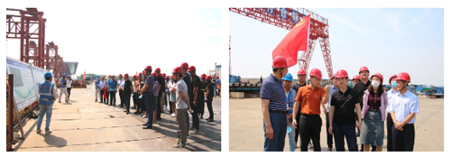 在鳳凰黃河大橋,項目負責人對鋼塔、鋼箱梁頂推和跨堤引橋施工以及安全、質量、進度、環保和疫情防控等情況進行了介紹,支部成員進行了現場參觀。
