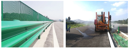 金宇公司在波形梁鋼護欄施工中,采用綠色環氧鋅基材料,以清潔能源生產替代傳統加熱方式,減少碳排放每噸護欄平均節煤100公斤,減排250公斤。在護欄立柱鉆孔施工中采取灑水降塵措施,嚴格做好環保工作。