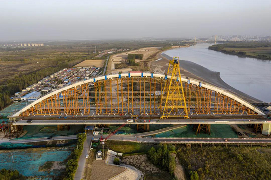 繼濟樂高速南延線順利通車、鳳凰黃河大橋主橋合龍后,由濟南城市建設集團負責建設管理的跨黃通道工程又迎來重要節點,經過90天的連續作業,10月21日凌晨,齊魯黃河大橋首跨拱肋順利合龍。隨著最后一節段拱肋的精準安裝到位,項目建設再次取得重要節點性進展。