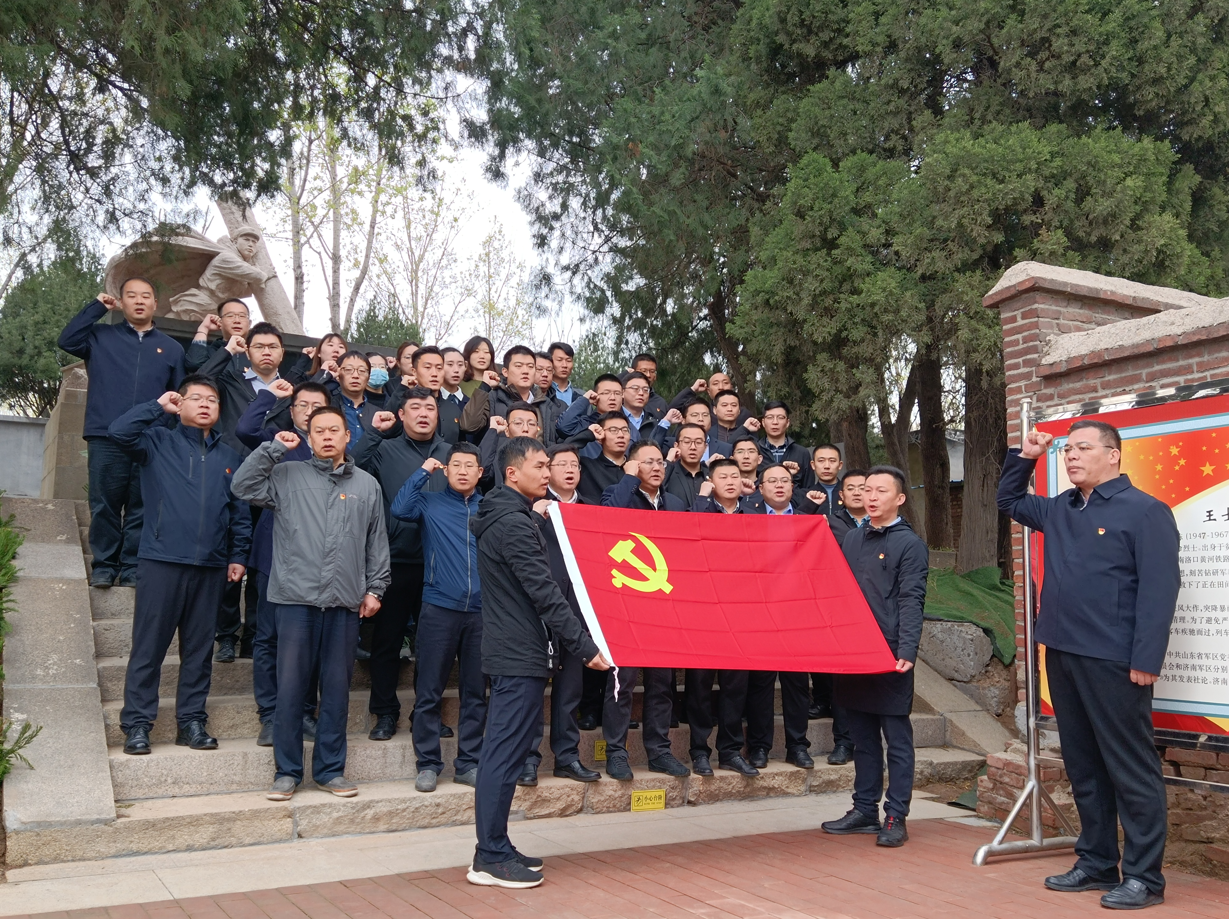活動中,黨員代表向王士棟烈士敬獻花籃,黨員們瞻仰烈士紀念碑、深情緬懷烈士功績、寄托哀思并在中國共產黨黨旗的見證下,重溫入黨誓詞。