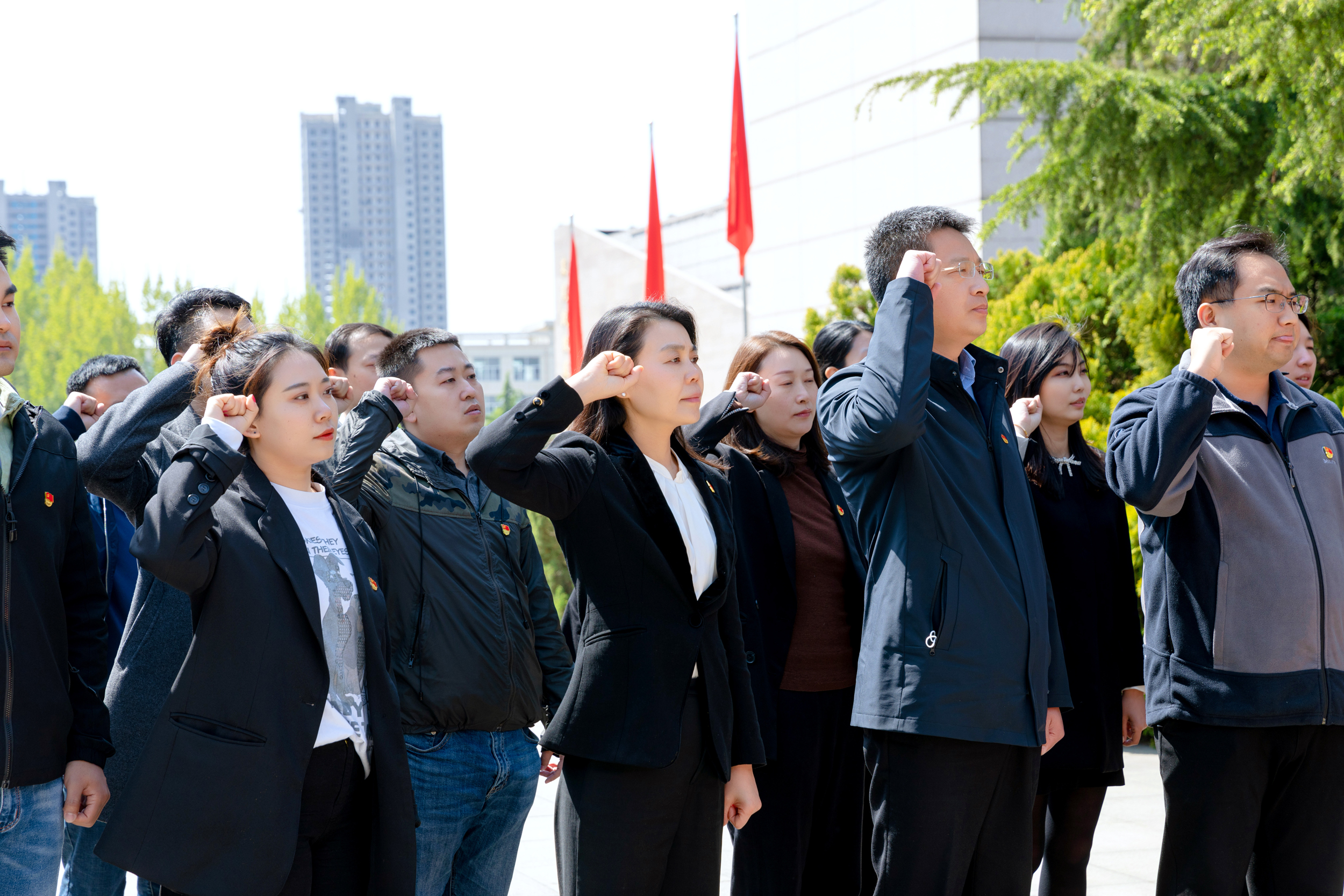 在革命烈士紀念碑旁,全體黨員面對黨旗莊嚴宣誓,重溫入黨誓詞,時刻提醒自己所肩負的神圣使命和責任,始終牢記黨員身份、對黨忠誠。