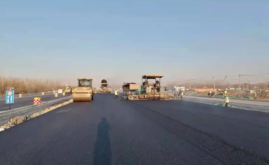 在濟樂高速崔寨南互通立交南側(cè)出口處,項目與山東省交通科學(xué)研究院合作,首次在濟南市政工程中試驗應(yīng)用全厚式瀝青攤鋪技術(shù)。該技術(shù)不但能有效提高路面結(jié)構(gòu)使用壽命,同時可以減少水泥穩(wěn)定碎石的使用量,在優(yōu)化瀝青路面級配的同時,節(jié)省工程造價,并將施工工期縮減為原來的60%左右。