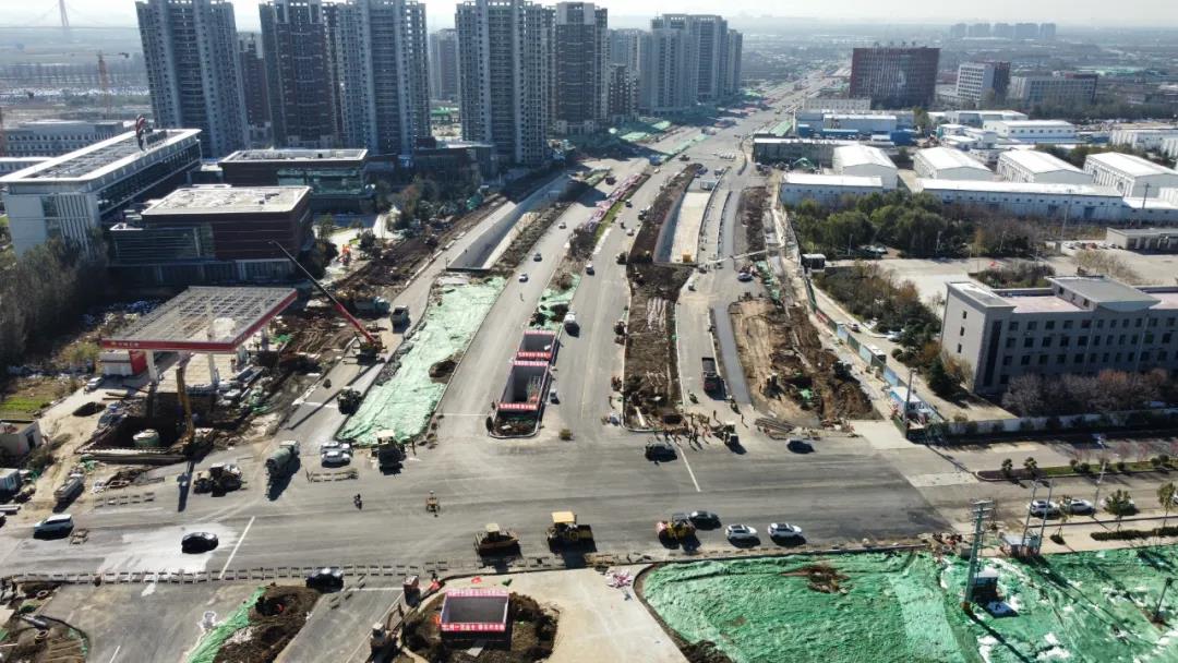 入冬以來,濟南氣溫驟降。黃河大道(一期)工程克服寒潮低溫及雨雪天氣等不利因素,落實冬期施工保障措施,晝夜奮戰,搶抓工期,施工現場熱火朝天。截至11月15日,由建設集團所屬濟南城建集團有限公司負責施工的三標段,慢車道已基本完成水穩基層與瀝青路面施工,現正加緊對路沿石與花磚進行鋪設。
