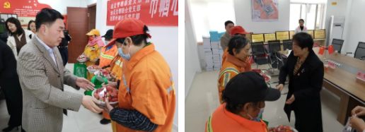 活動中,雙方黨支部黨員對“三八”國際婦女節仍堅守一線工作崗位的環衛女職工表示崇高的敬意,并對他們無私奉獻、任勞任怨的品質表示贊許,同時向環衛職工送上慰問品。
