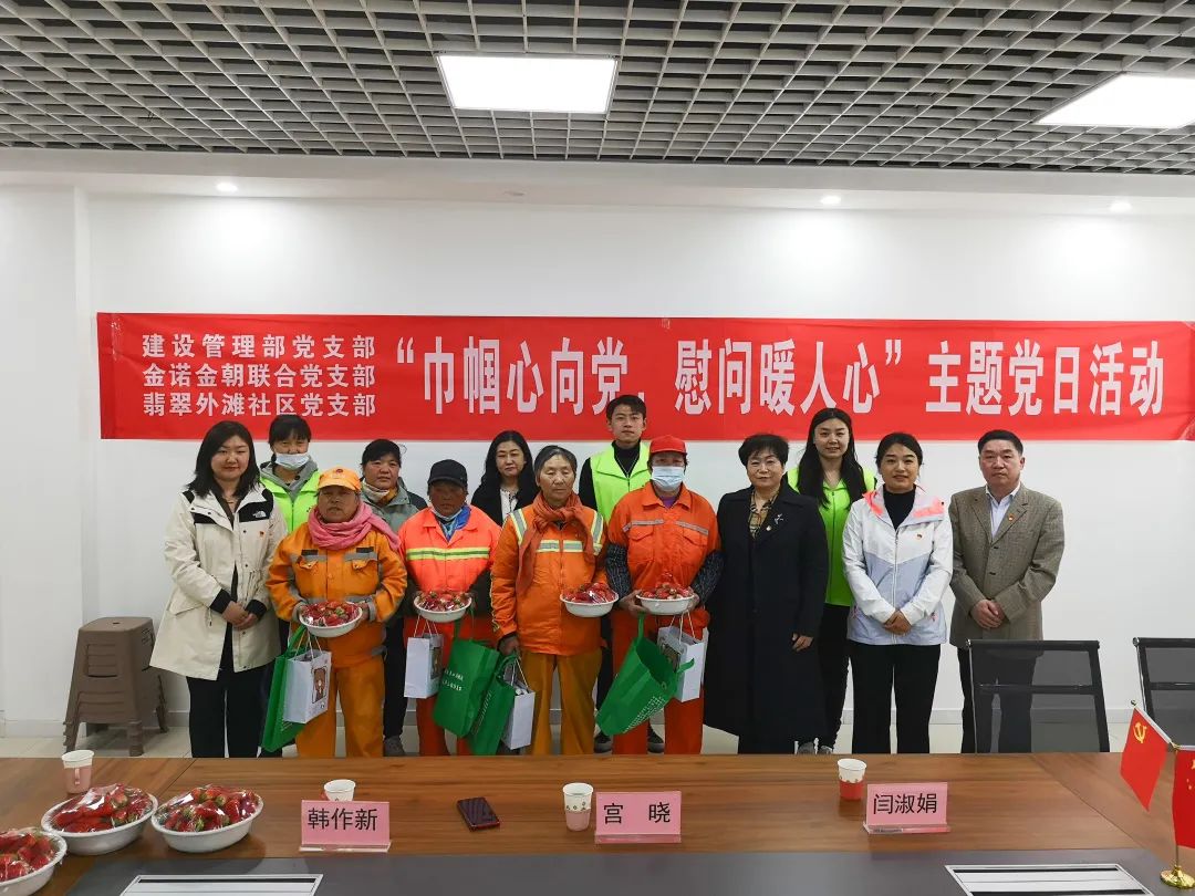 3月8日,集團建設管理部黨支部、金諾金朝聯合黨支部赴華山街道翡翠外灘社區開展“巾幗心向黨,慰問暖人心”主題黨日活動。