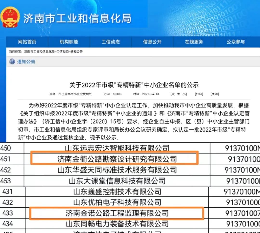 近日,濟(jì)南市工業(yè)和信息化局公布了2022年市級(jí)“專(zhuān)精特新”中小企業(yè)名單,金衢公司、金諾公司同時(shí)榮獲濟(jì)南市“專(zhuān)精特新”企業(yè)榮譽(yù)稱(chēng)號(hào)。
