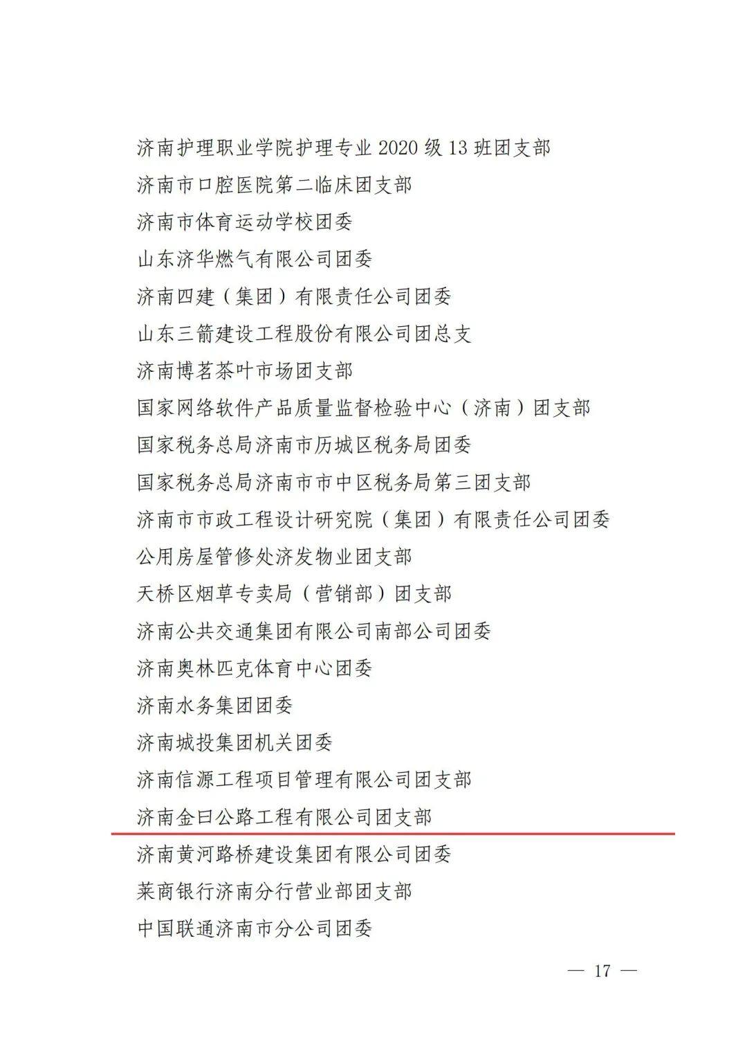 濟(jì)南城市建設(shè)集團(tuán)各級(jí)團(tuán)組織和廣大團(tuán)員青年、共青團(tuán)干部將以受到表彰的單位和個(gè)人為榜樣,更加緊密地團(tuán)結(jié)在以習(xí)近平同志為 核心的黨中央周圍,深入學(xué)習(xí)貫徹習(xí)近平新時(shí)代中國特色社會(huì)主義思想,增強(qiáng)“四個(gè)意識(shí)”、堅(jiān)定“四個(gè)自信”、做到“兩個(gè)維護(hù)”,以優(yōu)異青春業(yè)績(jī)迎接黨的二十大勝利召開!
