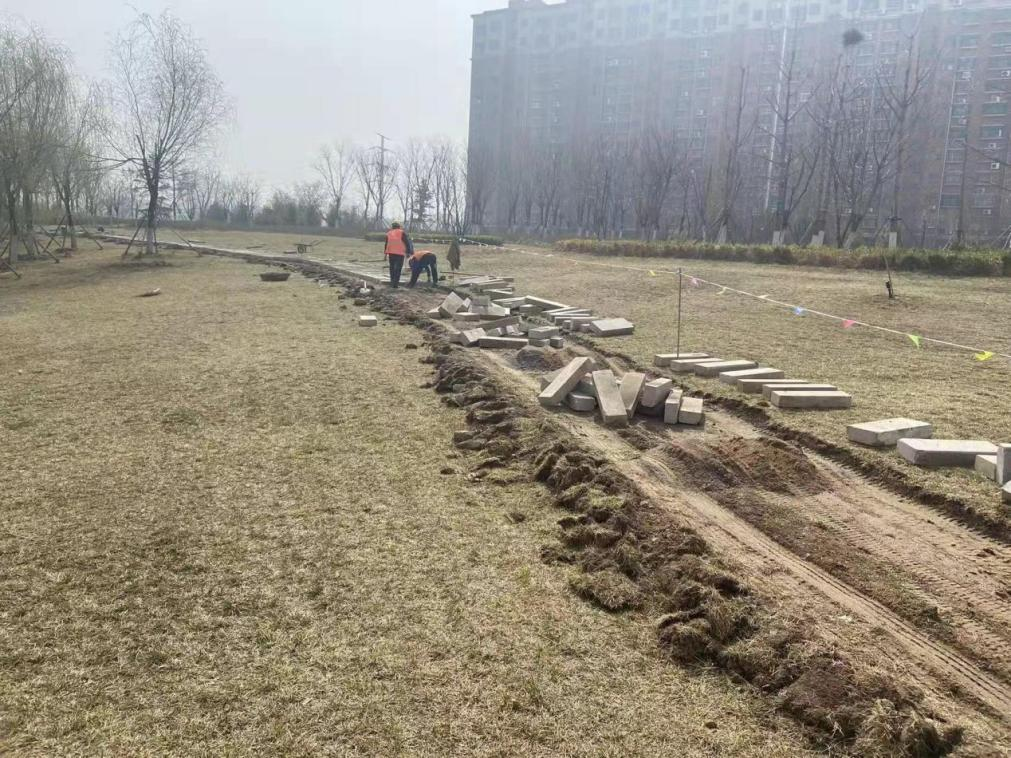 為進一步提升市民游園體驗,集團工程二部在華山濕地公園內增設汀步道路,連通園區與光華大道。此次施工從節約成本和滿足功能需求角度出發,使用片區原有石材,在公園東南區域鋪設汀步石640米,保證了公園綠地的完整和美觀,兼顧了市民通行游玩的便利。