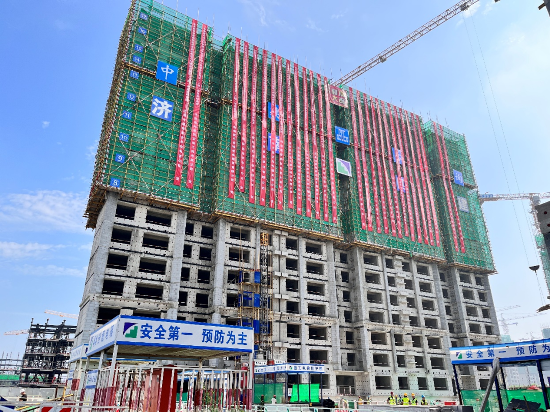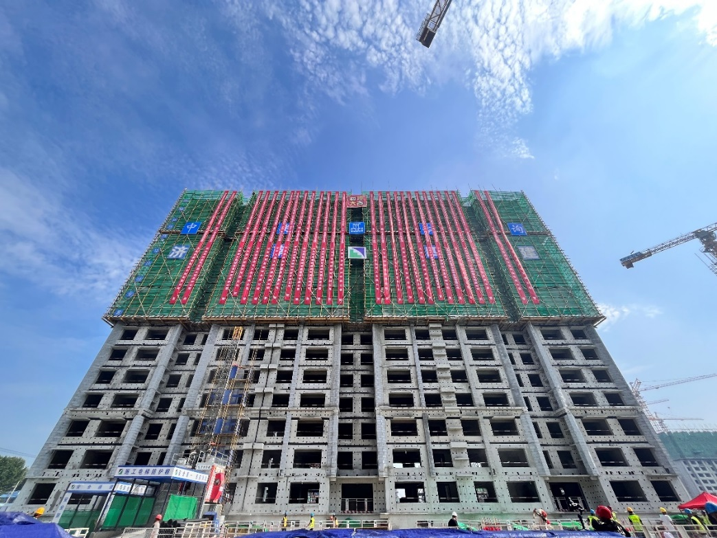 起步沖刺、再迎節點,起步區孫耿街道七村整合安置區(二期)工程首棟住宅封頂