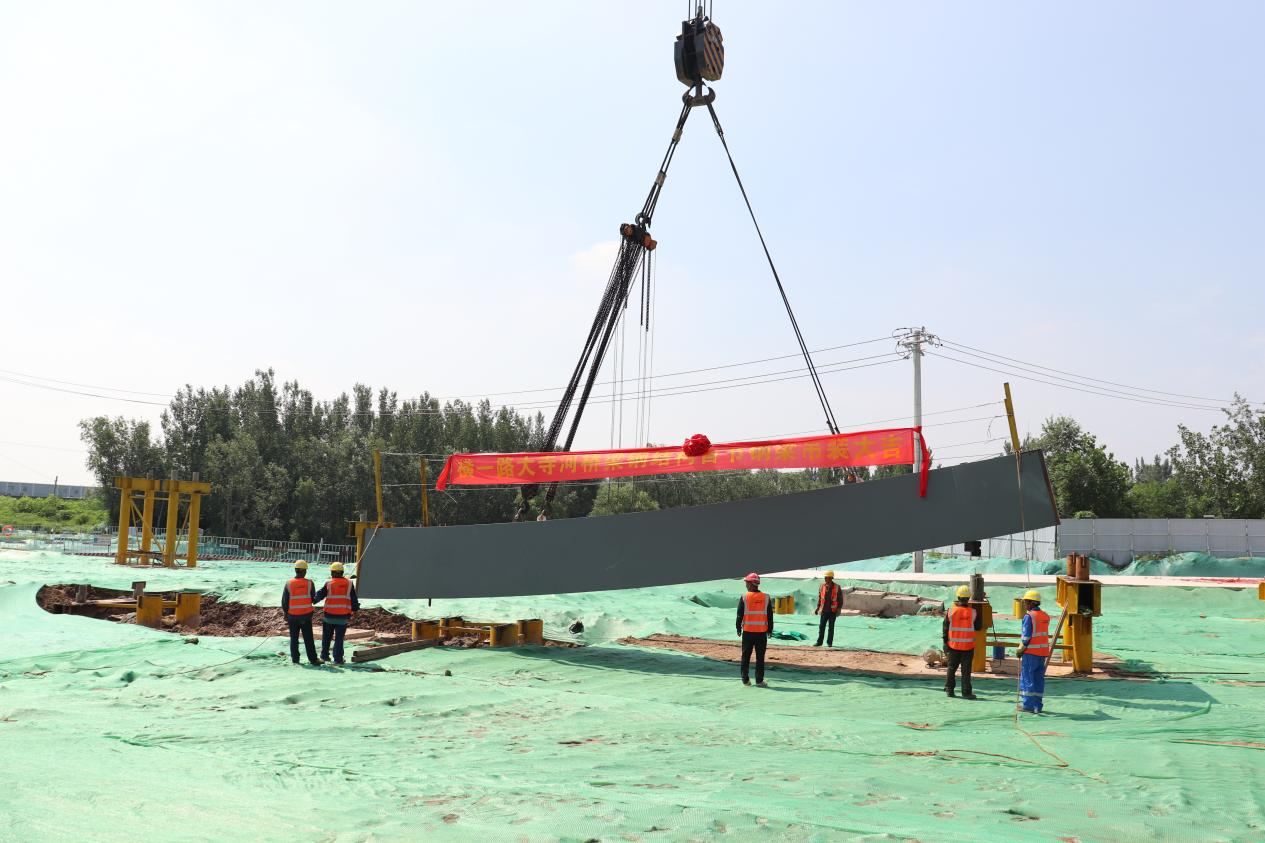 7月25日上午,濟南金曰公路工程有限公司起步區橫一路大寺河橋梁項目首節鋼梁成功完成吊裝,標志著大寺河橋梁項目下部結構全部完成,橋梁上部結構施工正式拉開序幕,項目建設進入攻堅階段。
