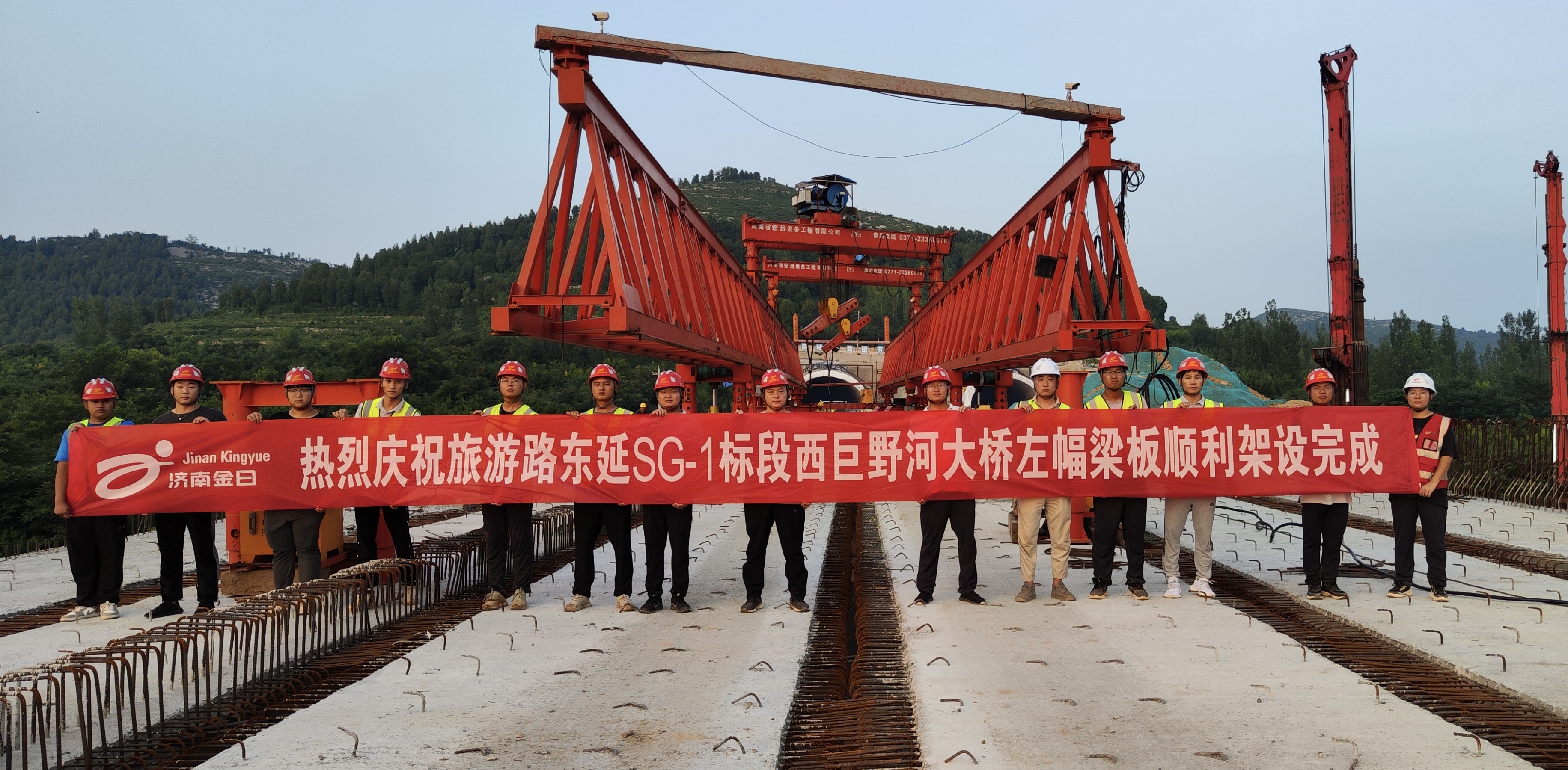 8月1日,隨著24#-4箱梁緩緩落下,由濟南城市建設集團所屬濟南金曰公路工程有限公司承建的旅游路東延項目西巨野河大橋左幅梁板架設全部完成,為后續橋面系施工奠定了堅實基礎。截至目前,本標段橋梁工程完成約80%,路基工程完成約83%,剩余管線及附屬設施施工有序進行中。