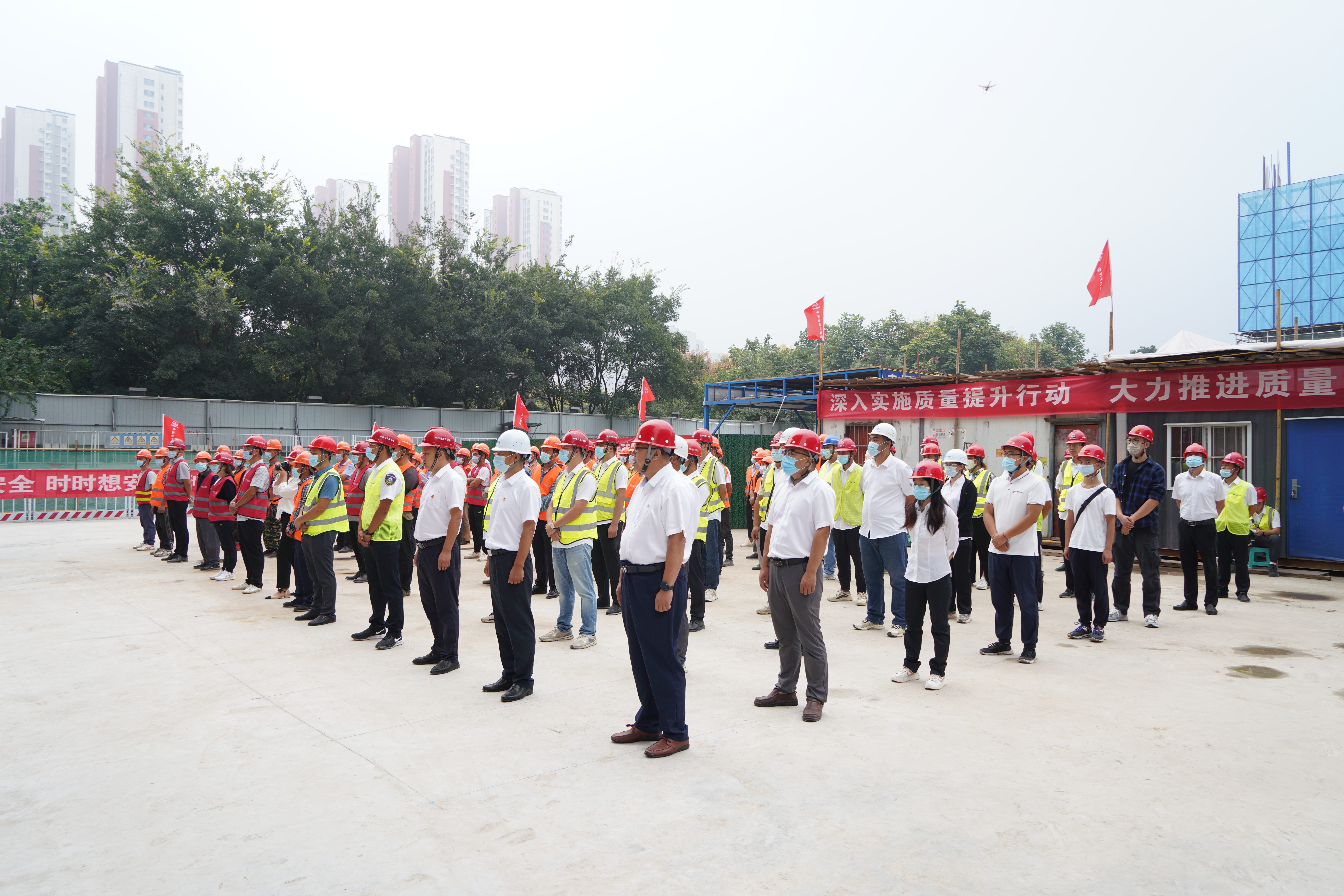 項目建設中,項目黨支部充分發揮基層黨組織戰斗堡壘作用,以“三面旗幟進班組,工匠精神鑄精品”為載體,深度融入施工生產,不斷強化員工的責任擔當意識,有力促進安全生產,并認真開展創建廉潔示范項目部活動。同時,項目建立質量管理體系,明確分工和責任,明確獎罰機制。成立QC質量活動小組,重點對裝配式安裝進行科研;每個分部分項工程編制質量專項方案,每道工序開工前進行交底,嚴格執行“首件樣板制度”過程實施“三檢制度”,發現問題形成清單記錄,及時閉合整改,實現疫情防控、工程建設、文明施工同步推進。