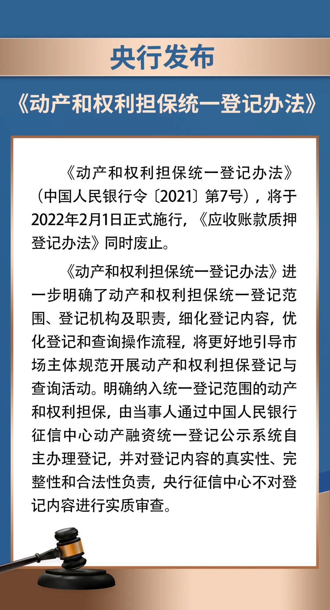 央行發布《動產和權利擔保統一登記辦法》
