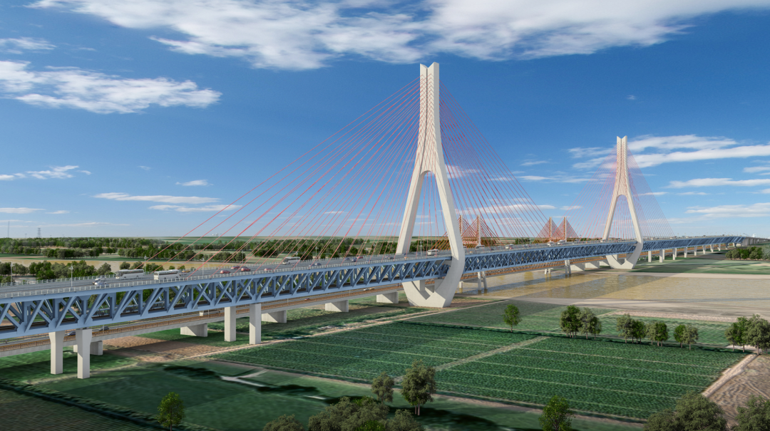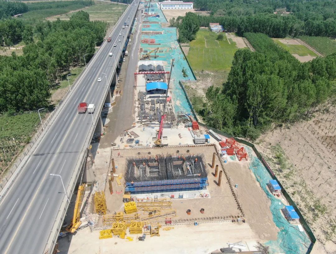 目前項目正在進行主線部分施工,100#主塔塔座及起步段混凝土澆筑完成,101#墩主塔下塔柱第一節混凝土澆筑完成。全線墩柱累計完成10座,全線承臺累計完成35座,全線樁基累計完成518顆。附屬工程施工同步進行中。