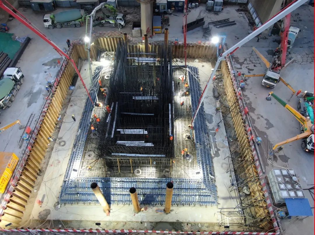 2022年4月18日因濟南疫情防控政策,項目疫情封控、封閉管理以來,項目部嚴格落實各級、各項疫情防控制度,堅持一手抓防疫,一手抓施工生產,實現了工地連續施工,完成了始發井兩塊底板和一塊頂板共計3500方混凝土澆筑施工。