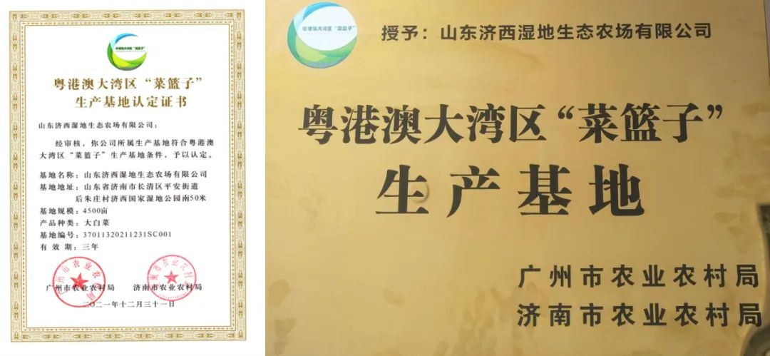 近日,山東濟西濕地生態農場有限公司通過粵港澳大灣區“菜籃子”生產基地認定,并被授予認定證書和基地牌匾,標志著濟西農業高質量的特色農產品獲得“通行證”進入粵港澳大灣區的“交易大廳”,為公司農產品開拓粵港澳市場奠定了基礎。
