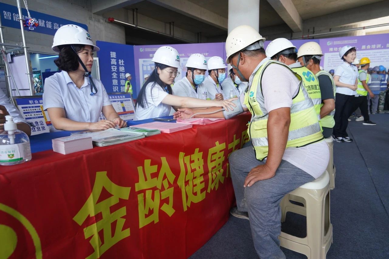 活動中,共青團濟南市委相關負責同志為濟南市志愿服務進項目實踐基地授牌;濟南建工集團相關負責同志致辭;參會領導為工人代表發放慰問品并參觀中科院項目志愿服務開展情況。