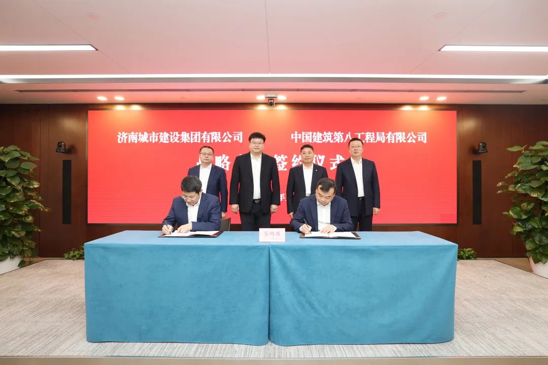 在與會(huì)領(lǐng)導(dǎo)的共同見證下,劉書冬、張建分別代表中建八局與濟(jì)南城市建設(shè)集團(tuán)簽署戰(zhàn)略合作協(xié)議。根據(jù)協(xié)議,雙方將進(jìn)一步整合要素資源,完善溝通機(jī)制,在基礎(chǔ)設(shè)施建設(shè)、片區(qū)綜合開發(fā)、城市更新及運(yùn)營等領(lǐng)域深化合作,共同推進(jìn)高質(zhì)量發(fā)展和濟(jì)南強(qiáng)省會(huì)建設(shè)。