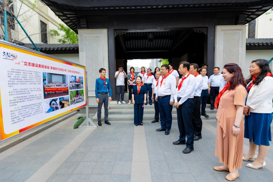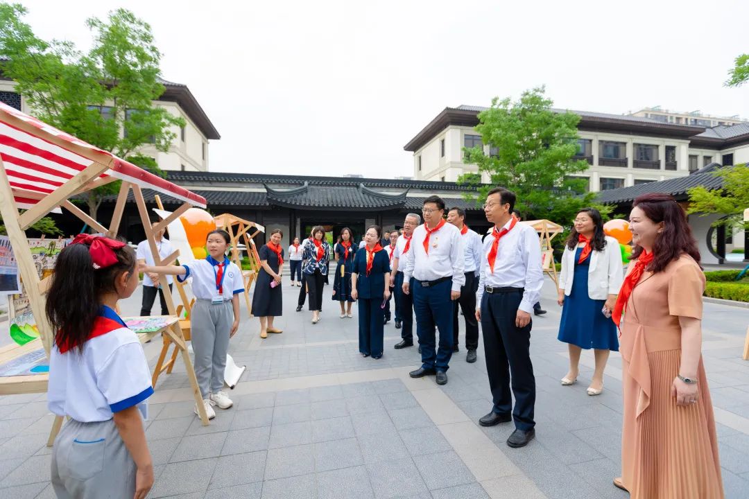 活動結束后,孫常建一行在楊柳春風學校進行了實地參觀調研,了解了書香校園建設活動,并與孩子們進行了親切交流。孩子們熱情洋溢地介紹了“槐蔭少年說”黨團隊一體化品牌建設活動、“我是黃河岸邊好少年”黃河文化項目化學習特色課程、“我眼中的康養名城、活力槐蔭”畫展和手工展、“家住槐蔭‘育’見成長”教育品牌、學校校訓和南北融合辦學理念等情況,并進行了古箏、寫生、經典誦讀等美育教育特色活動表演,美術社團、舞蹈社團、合唱團、足球社團、啦啦隊的成員代表們進行了成果展示。