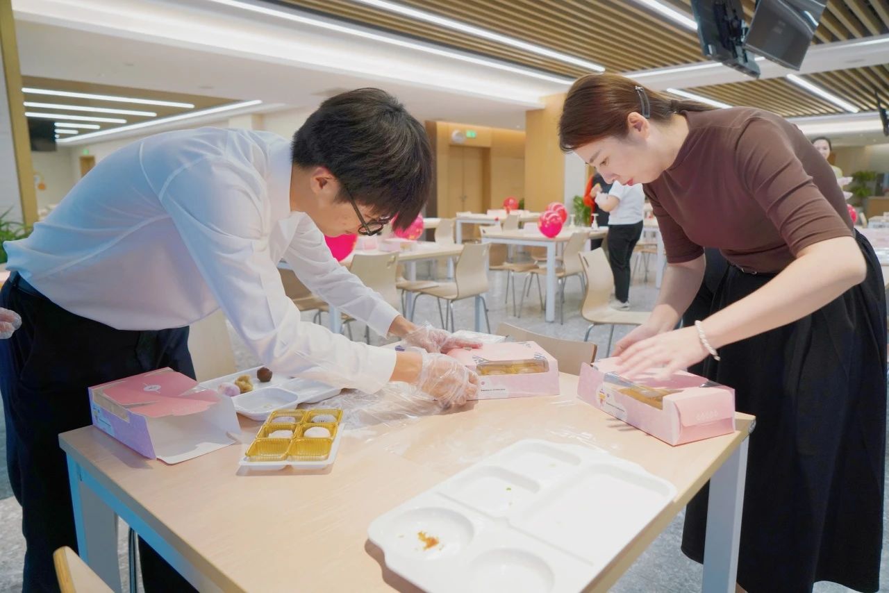 活動現(xiàn)場,糕點師傅悉心指導(dǎo),員工們踴躍參與,并交流分享月餅的制作方法和文化內(nèi)涵,在動手制作中感受傳統(tǒng)文化魅力和濃厚的節(jié)日氛圍。