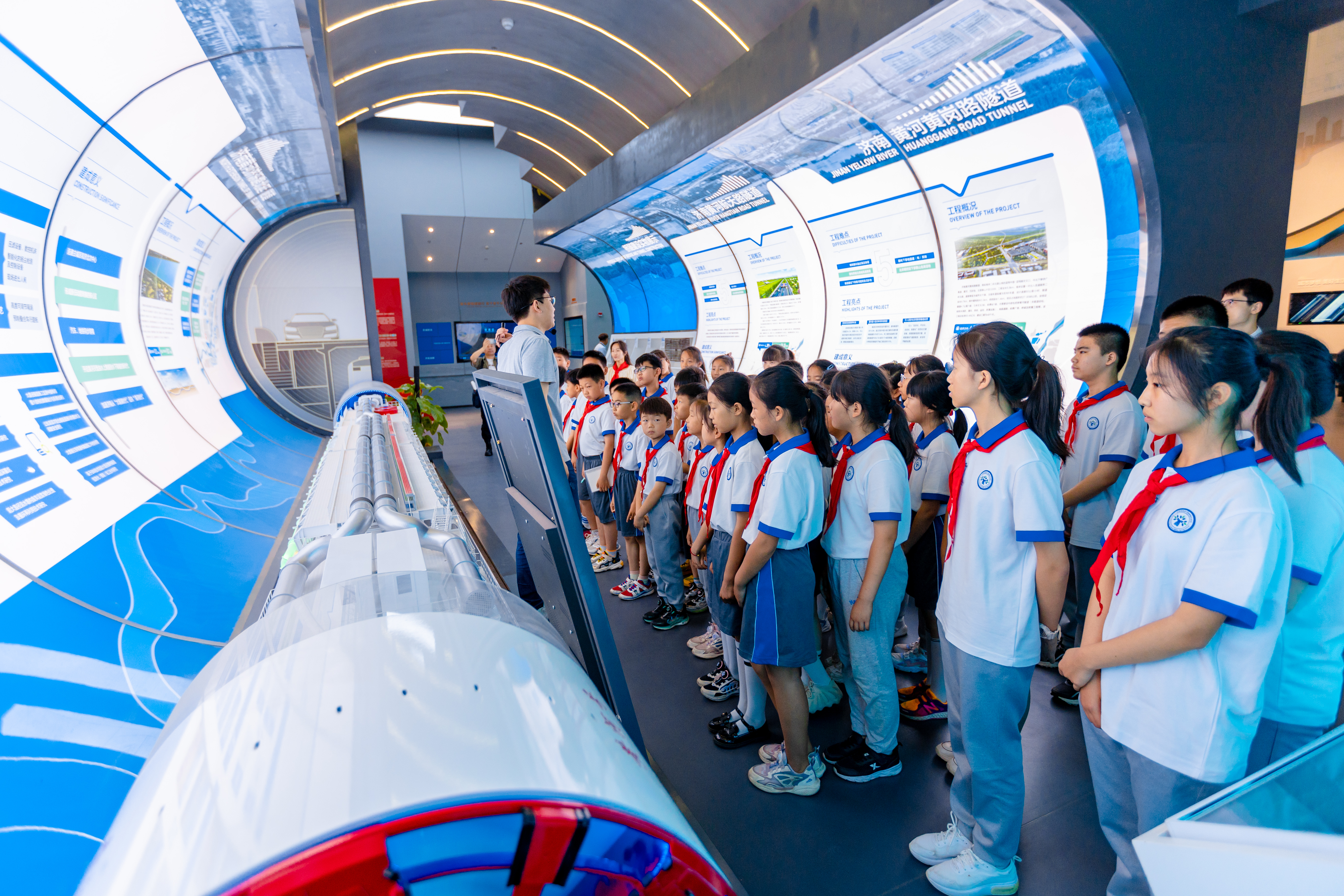在濟(jì)南城市建設(shè)集團(tuán)“四橋四隧”展廳,少先隊員們感受了濟(jì)南城市建設(shè)集團(tuán)在落實黃河流域生態(tài)保護(hù)和高質(zhì)量發(fā)展戰(zhàn)略及“項目建設(shè)年”工作部署中的生動實踐。