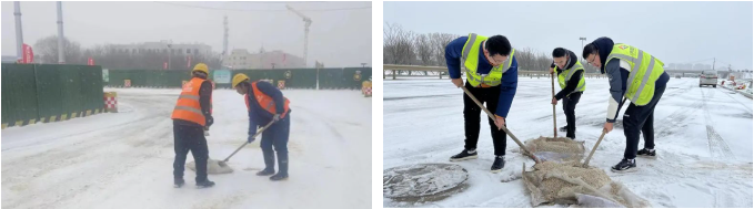 各項(xiàng)目在接到降雪預(yù)報(bào)后,按照要求提前做好各項(xiàng)清雪除冰準(zhǔn)備工作,并安排人員在崗值守,密切關(guān)注雪情路況,第一時(shí)間撒布融雪劑、鏟雪、除冰,機(jī)械作業(yè)與人工作業(yè)交替進(jìn)行,對(duì)重點(diǎn)路段進(jìn)行鏟、推、掃、堆一體化循環(huán)作業(yè),加快清理道路積雪,為來往行人車輛清理出安全整潔的通道,為市民群眾平安出行保駕護(hù)航。