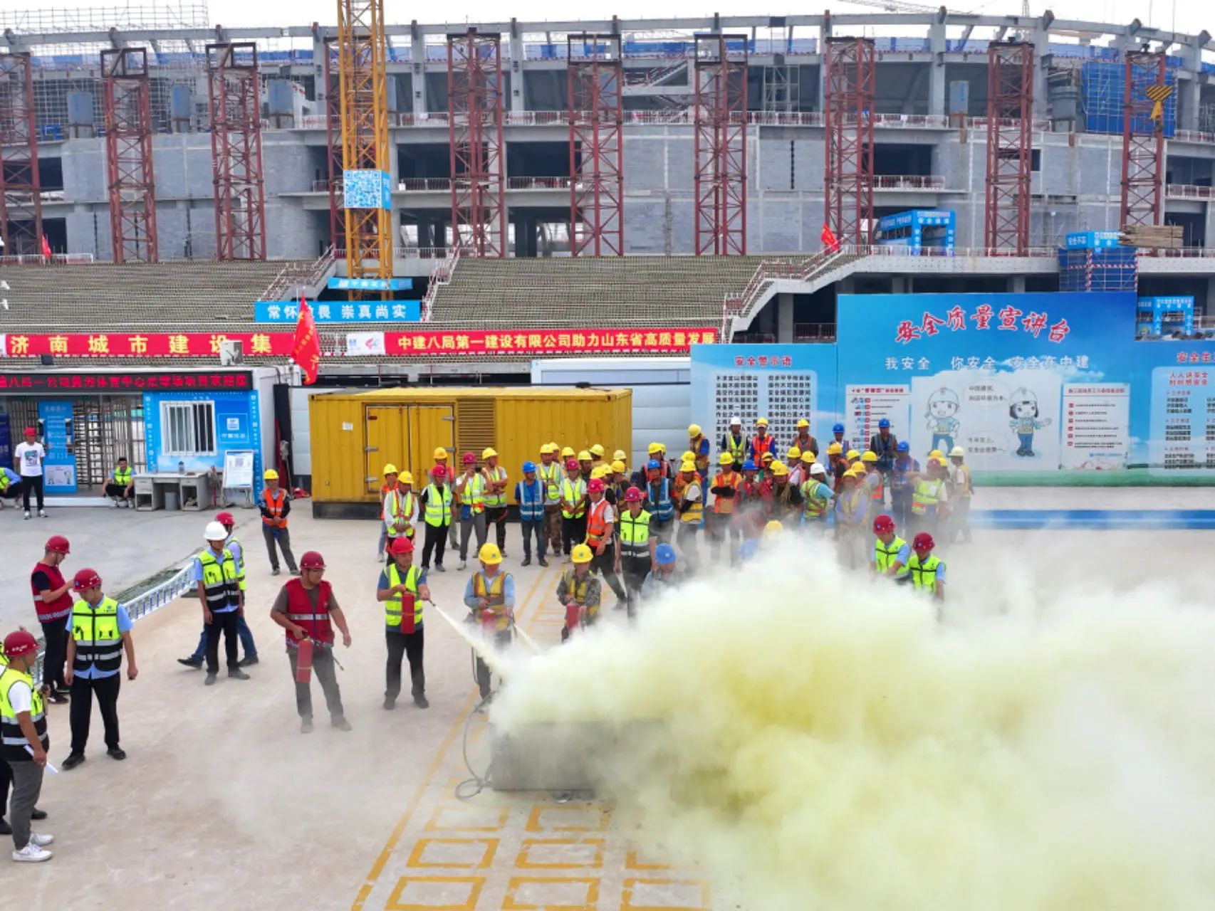 為了進一步筑牢消防安全防線,全面提升消防救援隊伍的滅火救援能力,提高全員應(yīng)對復(fù)雜環(huán)境下的火災(zāi)處置能力,近日,集團工程四部在黃河體育中心專業(yè)足球場項目組織開展2023年秋季消防應(yīng)急演練活動。