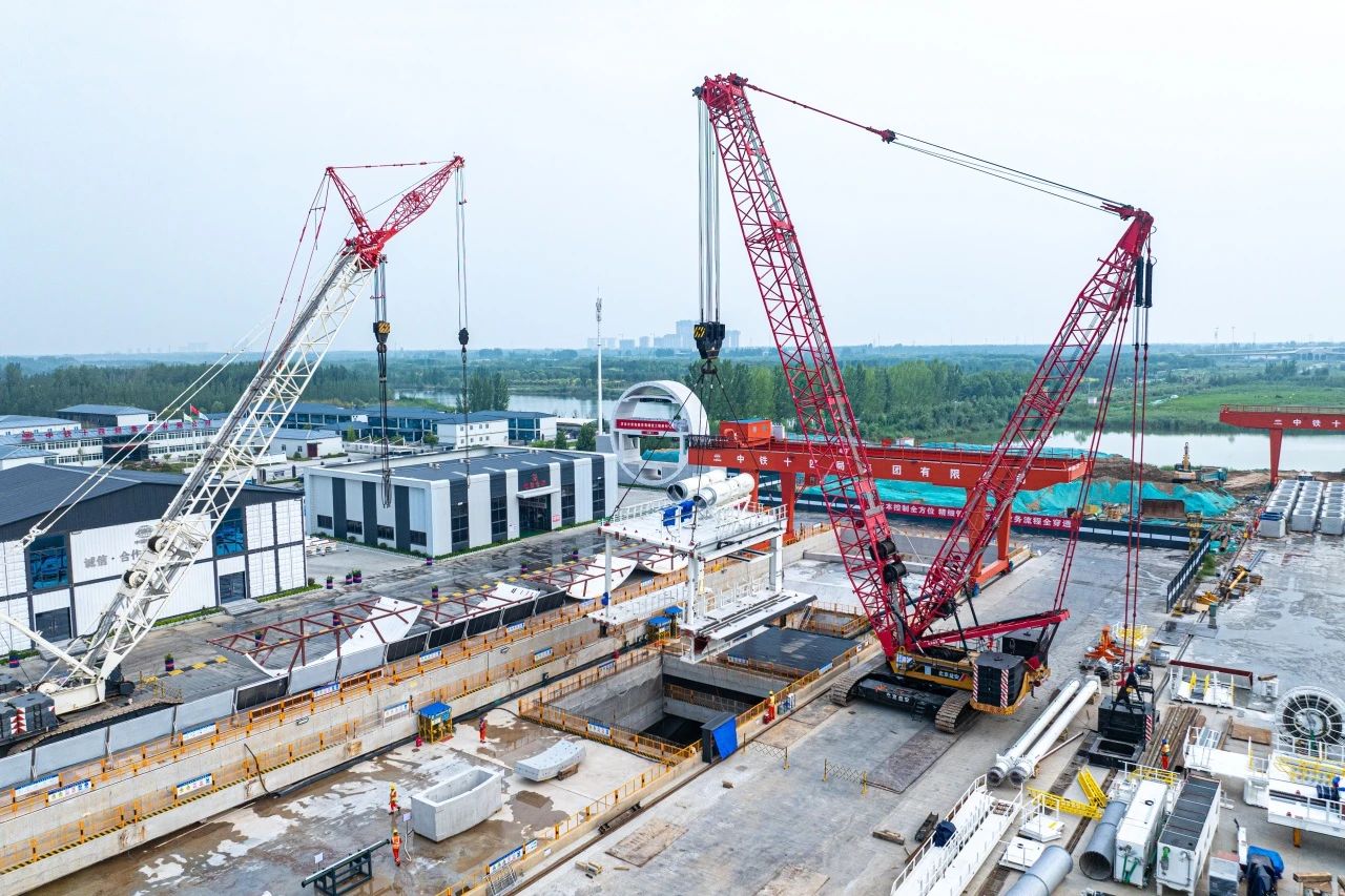 濟南市黃崗路穿黃隧道“山河號”盾構機主驅動及四號臺車順利下井