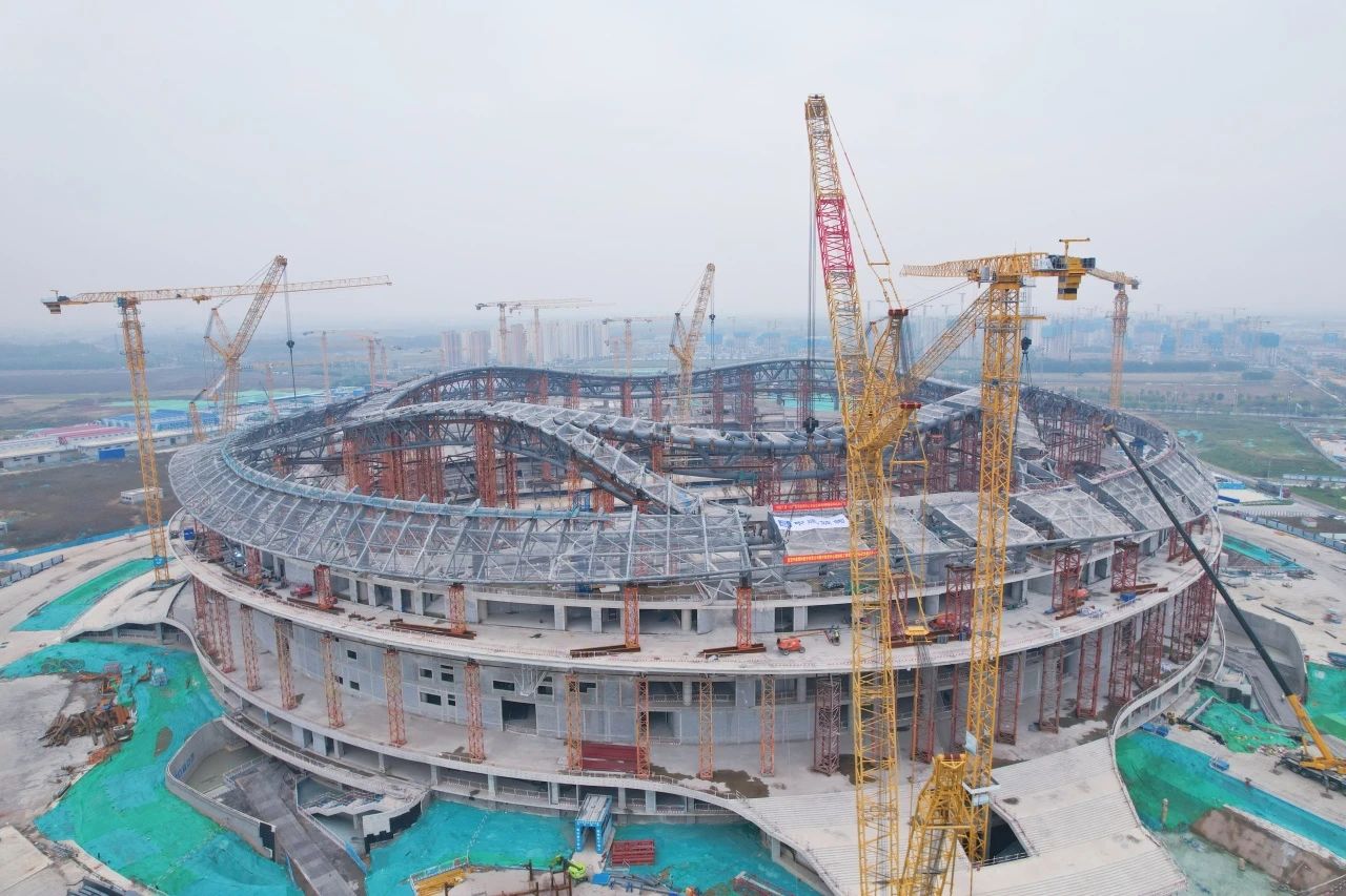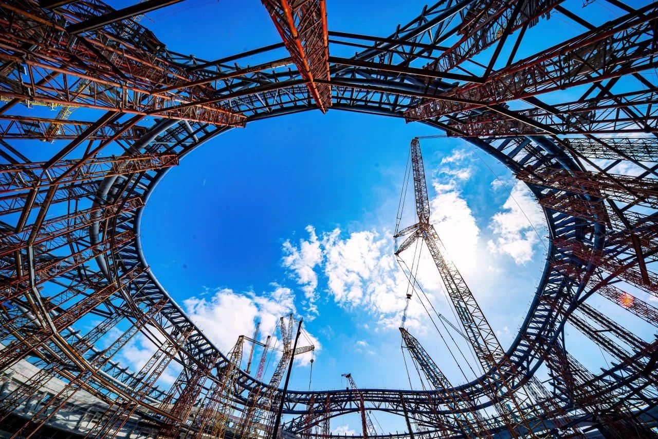 10月21日,隨著最后一榀百噸鋼桁架精準(zhǔn)入位,由濟(jì)南城市建設(shè)集團(tuán)受委托建設(shè)的黃河體育中心專業(yè)足球場(chǎng)項(xiàng)目屋蓋鋼結(jié)構(gòu)合攏,標(biāo)志著屋蓋鋼結(jié)構(gòu)主桁架完成,正式進(jìn)入屋蓋鋼結(jié)構(gòu)網(wǎng)架施工階段。