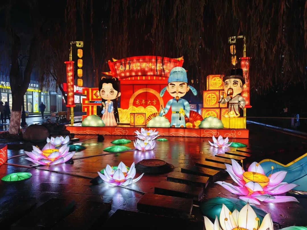 燈會沿街區泉印廣場、清泉石上流、卿風大街等布局,設置千余盞紅燈籠,并搭建瑞龍迎春、齊魯名士、龍鼓爭鳴、龍鳳呈祥等6處大型主題燈組。