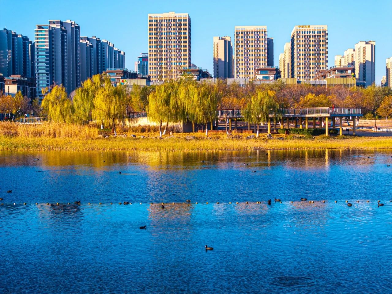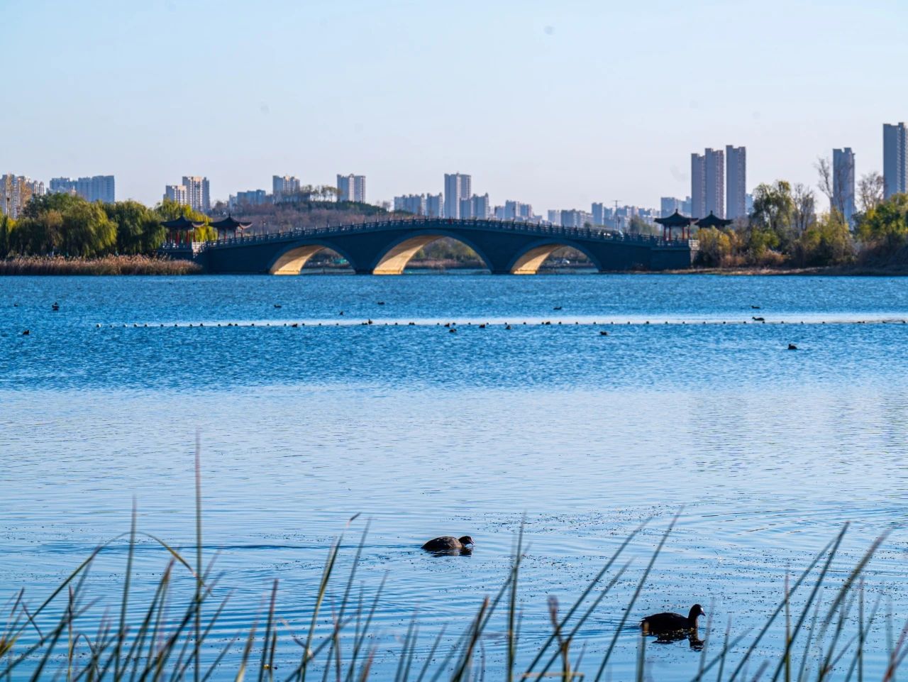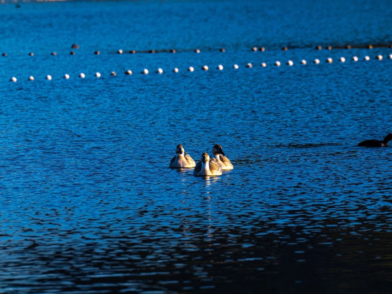 羽翼輕展映寒暉,群鳥嬉戲逐水歸。秋末冬初,上百只國家二級保護(hù)動物白骨頂雞如約來到濟(jì)南華山景區(qū)棲息,赴冬日的約定。