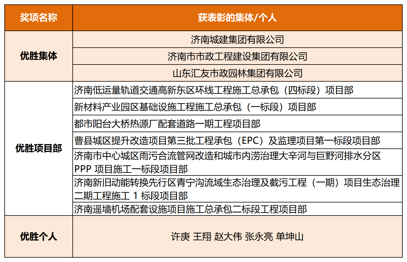 近日,山東省住房和城鄉建設廳、中共山東省委省直機關工作委員會、山東省總工會聯合發布《關于公布2024年度全省住房城鄉建設系統重點工程“聚焦新質生產力 服務高質量發展”創新創優勞動競賽獲獎名單的通知》,建設集團所屬濟南城建集團公司及下屬子公司市政集團公司、匯友集團公司獲評“優勝集體”;城建集團公司濟南低運量軌道交通高新東區環線工程施工總承包(四標段)項目部等7個項目部獲評“優勝項目部”;城建集團公司5名同志獲評“優勝個人”。在競賽調研濟南站觀摩會上,城建集團公司和市政集團公司分別被授予“工人先鋒隊”“青年突擊隊”榮譽旗幟。
