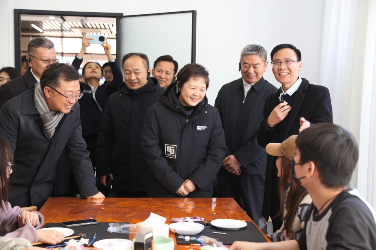 揭牌儀式結(jié)束后,謝力一行視察了槐蔭山東手造(非遺)展示體驗(yàn)中心、潘魯生民藝館、山東水彩畫院以及帷幕開啦文藝蠟像館,一起感受了濟(jì)南老城底蘊(yùn)和新潮文化。在蠟像館身臨其境地感受了名人魅力風(fēng)采、傳統(tǒng)文化的視覺盛宴,參與了多元化場(chǎng)景互動(dòng),體驗(yàn)到文化和科技融合所產(chǎn)生的效能已成為傳承文化蓬勃發(fā)展新形態(tài),使文化煥發(fā)出新的生機(jī)。