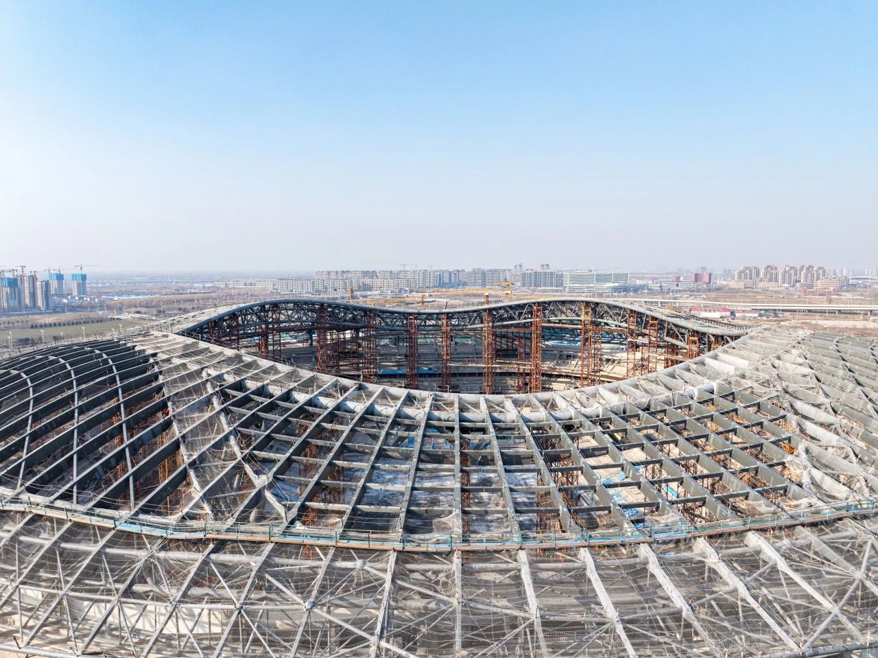近日,由濟南城市建設(shè)集團受委托建設(shè)的濟南黃河體育中心足球場項目屋蓋鋼結(jié)構(gòu)支撐體系卸載工作完成,項目全面完成鋼結(jié)構(gòu)施工,下一步將進入索膜結(jié)構(gòu)、幕墻和金屬屋面施工階段。按照施工安排,該項目預(yù)計2026年12月達到竣工驗收條件。