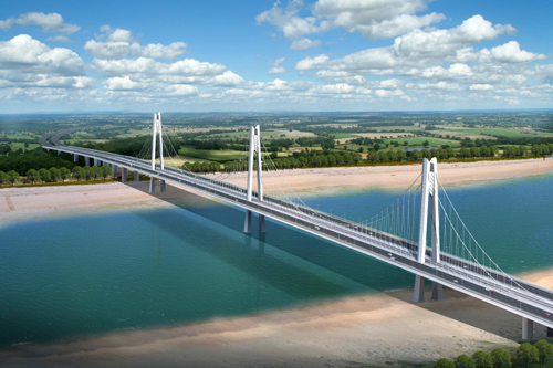 濟南黃河鳳凰大橋 鳳凰路北延工程位于濟南市歷城區、高新區、濟陽縣,路線南起壩王路與荷花路交叉口,接現狀壩王路,依次跨越邯膠鐵路聯絡線、南水北調工程濟東明渠后繼續往北,在小河套村向西北方向延伸,跨越黃河后,終點位于遠期規劃主干路與G220交叉口處。項目全長6659.2米,其中,黃河特大橋長度為3668米,兩端接線長度為2991.2米,包括大橋1座,平面交叉2處,涵洞11道。 項目按照雙向八車道一級公路標準建設,兼顧城市主干路功能,設計速度60公里/小時,跨黃段橋梁范圍為公軌合建的橋梁形式,中間預留城市軌道交通空間,滿足城市軌道交通縱斷面相關技術條件。 本工程分兩個標段,一標段路線全長2946米,南起壩王路與荷花路交叉口,向北依次跨越邯膠鐵路聯絡線、南水北調工程濟東明渠后,與黃河大橋引橋接順。包含跨邯膠鐵路聯絡線及南水北調工程濟東明渠大橋一座(長約1105米),部分黃河大橋引橋(長約320米),其余均為路基段。 二標段路線全長約3713米,南起黃河大橋南岸引橋(樁號K2+946),向北跨越黃河后,終點位于遠期規劃主干路與G220交叉口處,包含跨黃河大橋一座及部分路基段。 黃河特大橋全長為3668米,水中橋梁橋跨布置為(104+165+104)+3×70+(70+168+428+428+168+70)+4×80+(154+245+154)米,主橋采用(70+168+428+428+168+70)米跨度的三塔空間索面自錨式懸索橋。